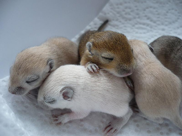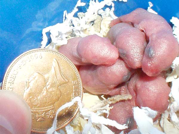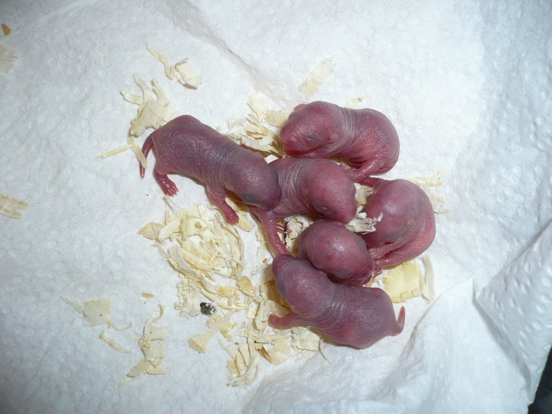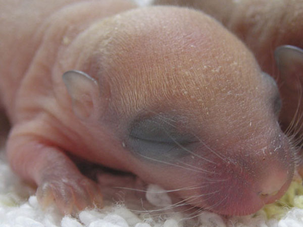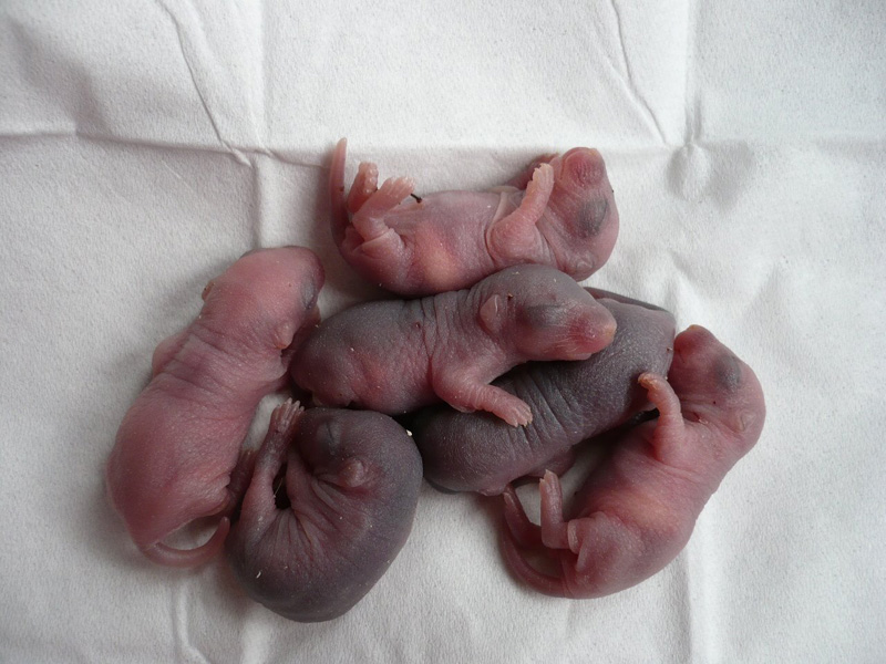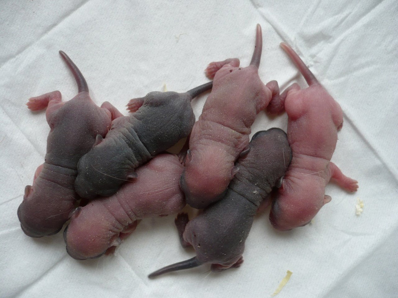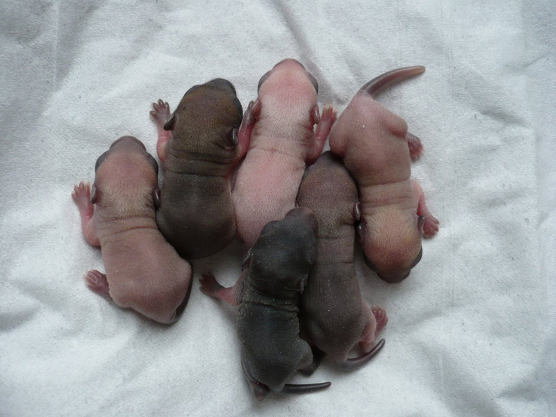 Ils sont nus, n'ont pas encore de dents, leurs yeux et leurs oreilles sont fermés, ils ont de toutes petites moustaches et ils poussent de petits couinements.