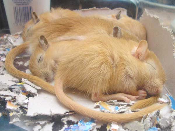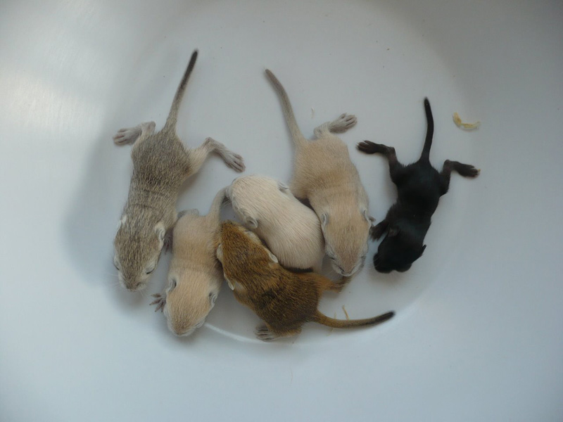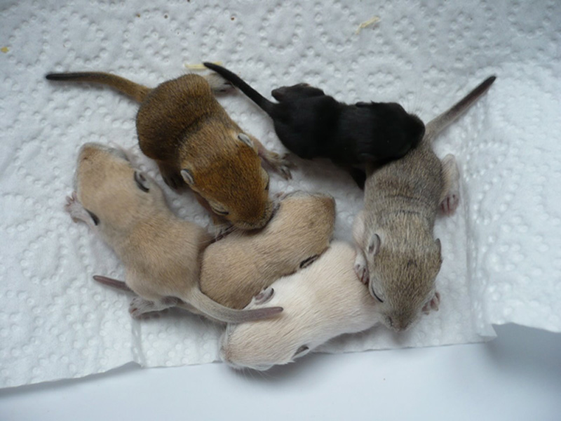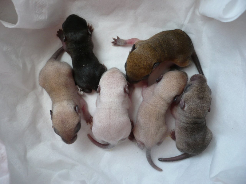 Vers 6 semaines (et bien que la maturité sexuelle des femelles ne survienne habituellement que vers 8 semaines - mieux vaut prévenir que guérir), il convient de déterminer le sexe des petits et de séparer les mâles et les femelles pour éviter que ne s'enclenche le cycle de la reproduction (trop hâtive pour la jeune femelle et problèmes de consanguinité, voir l'article d' Arnaud ).