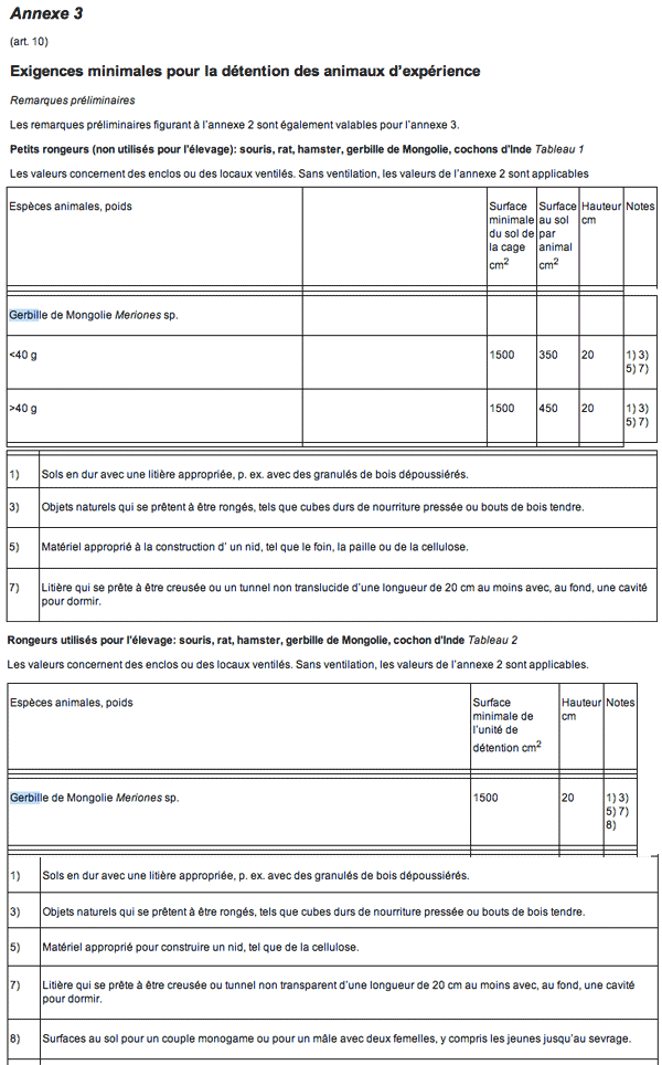 A consulter également, les annexes 2 et 3 qui donnent de précieuses indications sur les dimensions à respecter concernant l'habitat.