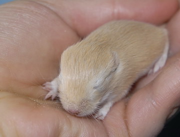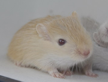 Les gerbilles appelées Argente Cream sont en fait des Light Argente Golden portant l'allèle c[h] sur le locus C. Les griffes sont rosées. Légère tiqueture grise (alors que la tiqueture des Topaze et Argente Golden est un peu plus prononcée). |