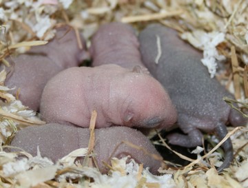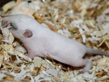 1 - bébé à 4 jours 2 - bébé à 6 jours 3 & 4 - bébé à 10 jours 5 - bébé à 16 jours 6 & 7 - bébé à 2,5 mois Avant même la pousse du premier duvet les oreilles et la queue sont légèrement plus foncées que le reste du corps. Ceci est caractéristique des Color Point + "ee" + "G-". Le premier duvet est entièrement blanc. Vers 8 semaines les extrémités commencent à foncer (oreilles, museau, pattes, queue) et une tiqueture grise apparait sur le dos. |