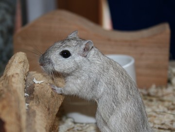La Silver Nutmeg prend sa couleur définitive à sa première mue qui débute vers ses 8 semaines. Son pelage crème orangé de bébé prend petit à petit une tiqueture grise très prononcée. Le ventre est plus clair que le dos et ses griffes sont brunes. La queue est de la même couleur que le dos. La dernière chose à savoir est que la tiqueture grise est variable d'un individu à l'autre. Certaines Silver Nutmeg auront une tiqueture légère tandis que d'autres l'auront très prononcée. On les appelle alors Dark Silver Nutmeg. |