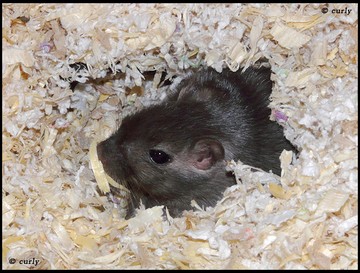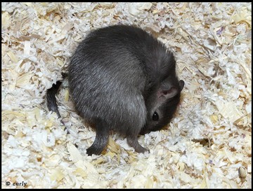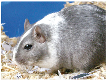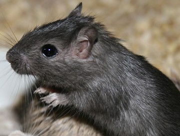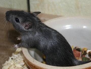 2 & 3 - gerbille Slate 8 - gerbille Slate Pied (le gène Sp éclaircit la couleur de base) Une gerbille Slate ressemble fortement à une gerbille Black. Il est très difficile de les différencier si elles ne sont pas côte à côte. Une gerbille Slate a le sous-poil gris foncé et les griffes brunes tandis qu'une gerbille Black a le sous-poil et les griffes entièrement noirs. Globalement le pelage d'une gerbille Slate est noir avec des reflets bruns. Il est à noter qu'à la lumière le pelage de la gerbille Slate peut apparaître réellement brun avec de légers reflets gris (influence du "gg"). |