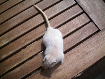 La 1ère mue intervient un peu plus tard que pour les autres couleurs. Les Schimmels sont beige orangé à la fin de celle-ci et deviennent de plus en plus pâle au fur et à mesure des autres mues. La queue et le museau resteront orangés, les griffes sont claires. |