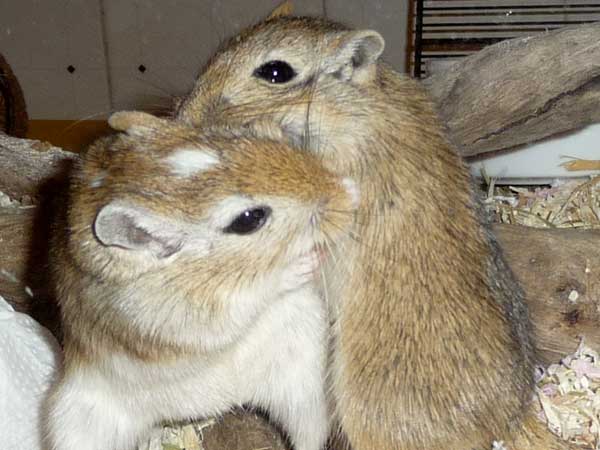 A certains moments, les gerbilles forment une boule qui s'agite dans tous les sens, d'une façon très inquiétante en couinant très fort: Ne les laissez pas faire, cela peut virer au drame car elles se mordent méchamment.
