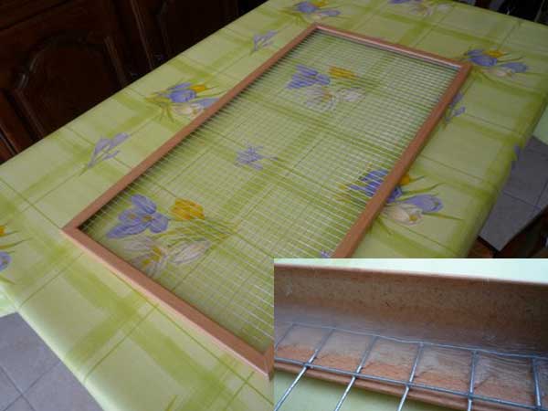 Pour le couvercle , assembler des tasseaux de bois et coller le grillage fin à l'intérieur en faisant attention de ne laisser aucune aspérité.