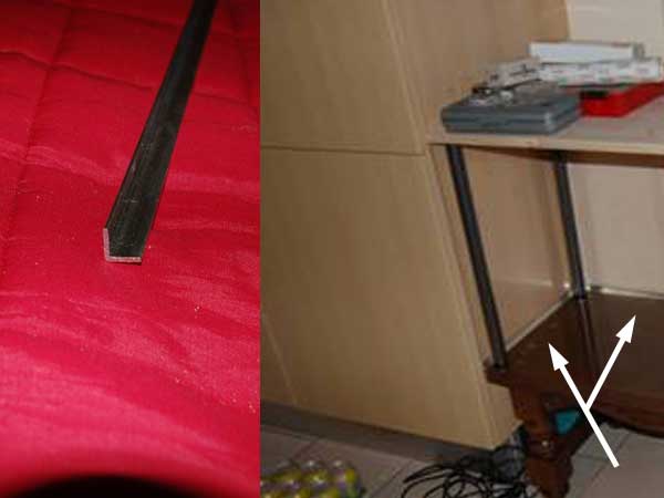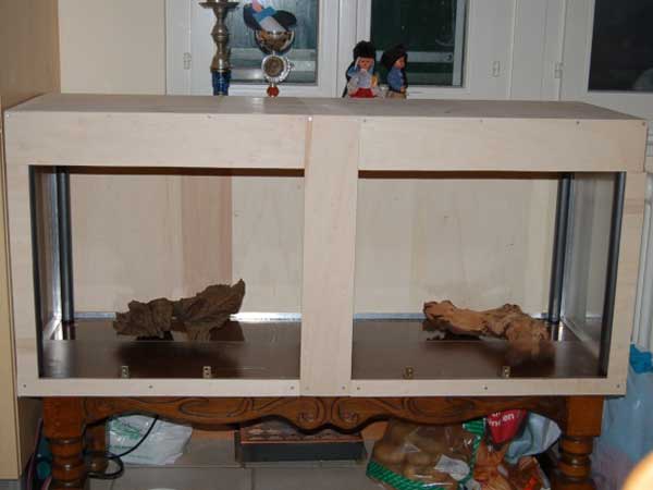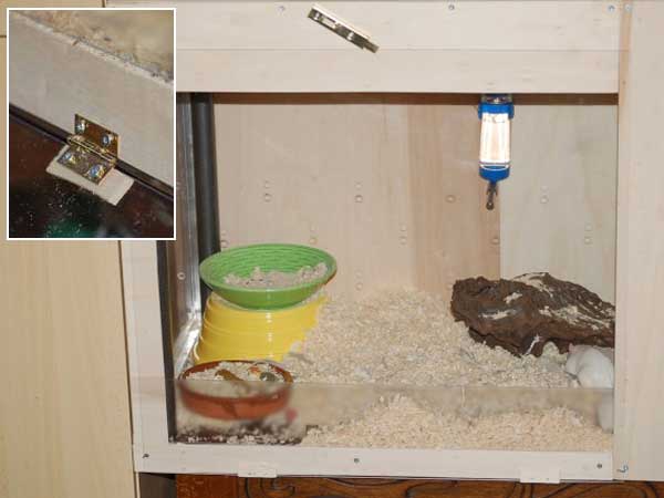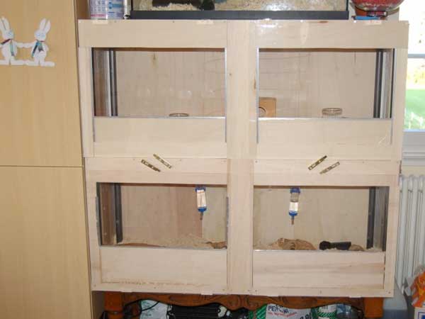 Coller avec du silicone pour aquarium les baguettes d'angles en métal sur le meuble de base (sur les côtés et l'arrière), le L vers l'extérieur de la future cage (pour empêcher les gerbilles de ronger les parois).