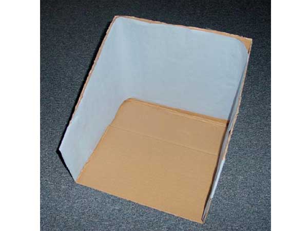 Choisir une boîte en carton qui mesure environ 50 cm de côté sur 40 cm de haut (facile à trouver gratuitement dans n'importe quel supermarché). Aucune importance si le carton est recouvert d'inscriptions, elles seront cachées par le décor.