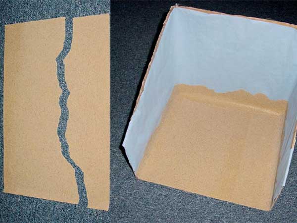 Découper également un carré de papier sablé aux dimensions du fond de la boîte pour faire le sol.