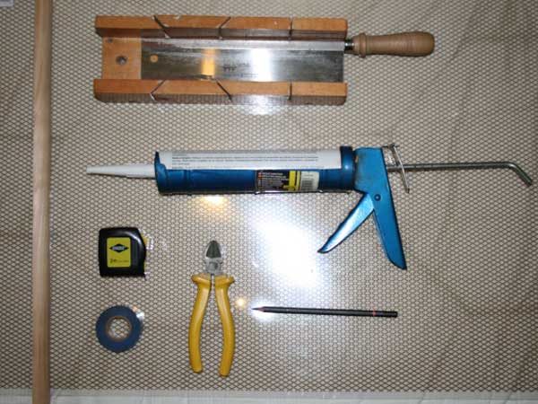 Découpez le grillage aux dimensions du terrarium/aquarium à l'aide de la pince coupante. ATTENTION : Pour les terrariums de type Exo-Terra, pensez à prévoir une encoche au niveau du loquet d'ouverture. Celui-ci est renfoncé par rapport à la paroi de verre.