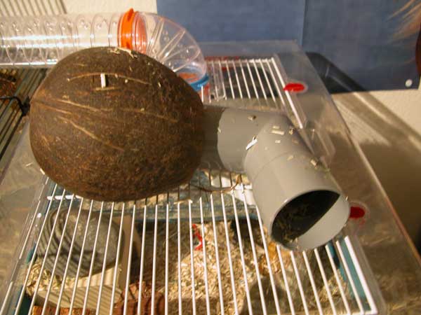 Percer un trou dans la noix de coco d'un diamètre à peine supérieur à celui du tube coudé en PVC (voir cette fiche bricolage pour plus de détails).